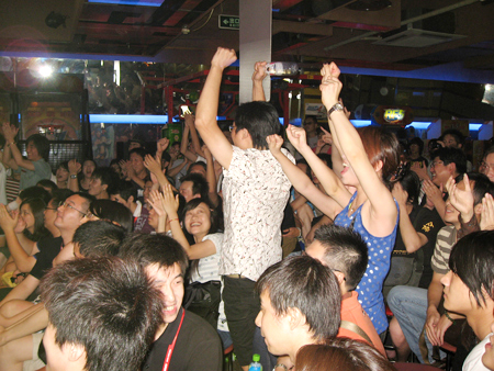 在PAUL击败王惊雷的那一瞬间,现场爆发出了一阵巨大的欢呼声,南京队的队员、亲友团、其他的南京玩家们立刻冲上舞台,将南京代表队的三名队员抱住,“猛啃”。兴奋之情溢于言表。而留给主队上海AYASHOP代表队和现场无数观众的,只有郁闷、失落、不甘、痛苦和无奈。