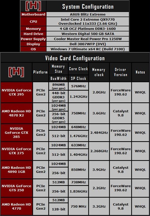 测试当中,NVIDIA和ATI显卡均选择了最新版的驱动程序,其中NVIDIA驱动为190.62版WHQL驱动,ATI则选择了9.8版WHQL驱动。