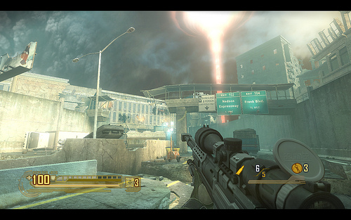 稍为清理了空降区域后,靠着EPA厚实的装甲和强大的火力,通行无阻。所有的ATC警备队员都成了你的枪下亡魂,然而道路并非完全畅通,813还是必须离开EPA,徒步和其他复制人士兵汇合。