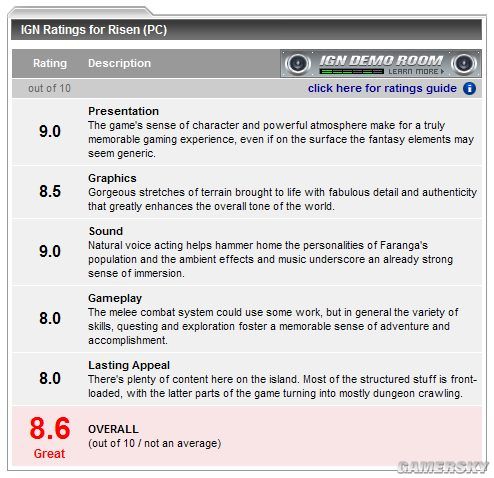 哥特(Gothic)系列的3D动作RPG《崛起(risen)》已上市,IGN 近日公布的总评分是8.6分。