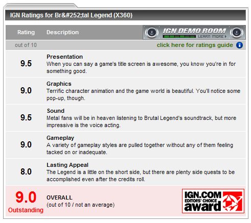 声效表现9.5分:金属摇滚迷们也许对游戏中的摇滚乐着迷,实际上游戏中人物的配音更令人印象深刻。