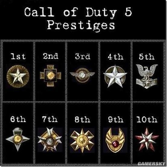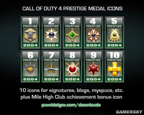 每经历一个循环则威望标志更新一次,以下为CoD4的威望等级标志(共十级,仅适用于主机版,PC无此模式):