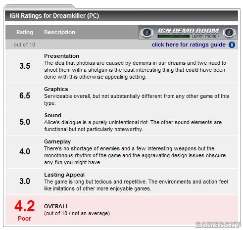 由Mindware Studios制作的射击《梦境杀手》已上市,国外著名媒体IGN近日公布的评测总分为:4.2分。这是近期继《暗黑之日》以来又一款低分游戏。