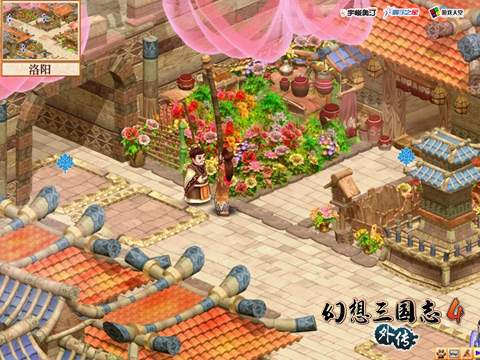 作为幻想三国志系列最后的完结篇——《幻想三国志4外传》在场景的设计上,摆脱了三国题材的凝重感,强调色彩的饱满与明亮,着力营造明快的游戏环境。放几张场景图,先睹为快吧!1、洛阳繁华的洛阳,处处繁花。这张仅仅是截图哟,但也掩不住那股鲜艳。2、神山入口清清的水,缭绕的云,若隐若现的山,