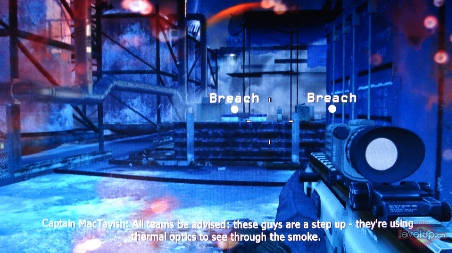 接下来的前进道路依旧是小心杀敌就行。到达目标地点后,按下→键打开制导导弹系统,结果却被敌人的sam导弹击毁,于是只好和Price冒险突入敌人基地。此时战斗不再是隐秘战斗,火力全开全力杀敌即可。注意在与上尉滑下坡之后作为掩体的木箱上,有一把带有心跳感测仪的武器,可以多多利用。