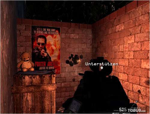 它的后面有贾斯汀·波特的海报和一只泰迪熊。你可以在《使命召唤4:现代战争》中找到同样的海报。