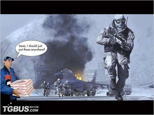 《现代战争2》作为一款名作被PS爱好者恶搞也不是稀奇的事,但是能够充分发挥自己在游戏娱乐方面的综合知识来恶搞就属难得了。下面的这些恶搞图就发挥了恶搞艺术的极致,不仅让电脑和游戏业界的巨头“难以幸免”,而且还让其它平台的游戏形象也“难逃一劫”,真是想象丰富。