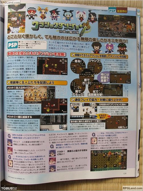 本作是一款回归2D点阵风格的PSP游戏,并且拥有高自由度的角色设计和培养系统。玩家将会控制主人公集合多位同伴的力量控制“魔装阵”来进行冒险。游戏的主要角色有9人,同时还有更多数量的自制角色。他们互相轮换着担任“主角”和“配角”的职务,在迷宫中进行冒险。