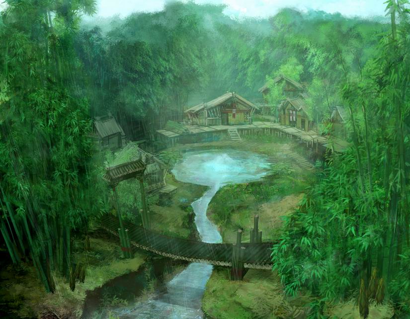 这是烛龙首度公开的游戏场景之一:甘泉村。幽静的竹林,宁静的小村,不知道有没有给玩家朋友们带来一种身心愉悦的感觉呢?据烛龙工作人员介绍,在实际的运行画面中,设定图中湛蓝的天空,洁白的云朵将比拟相片级效果,而力求表现的阳光透过竹林洒在地上的光影特效将全部实现。