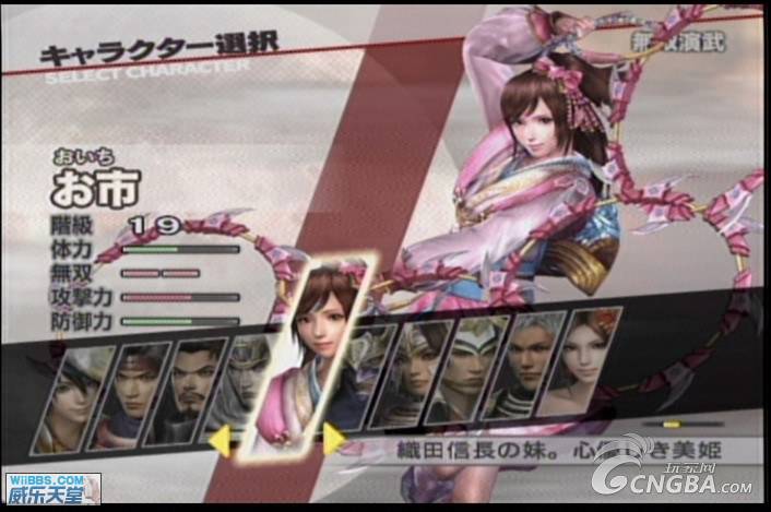 在这个模式下玩家有11名武将可以选择,我个人比较喜欢织田信长的妹妹,所以就选择玩她的无双模式。