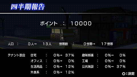 在PSP新作:《街道制作者:3倍速逃走中》玩家的主要目标是建造出理想的街道带动整个城市的发展。游戏在继承前作基本系统上再增加了多种租户,进一步提升了自由度。许多现实中的商家都会在游戏中登场,比如:吉野家、71便利店、KFC等,玩家甚至可以建设出具有现实感觉的街道。