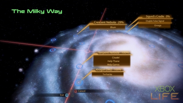 很多人可能会想问Mass Effect 2《质量效应2》不懂英文能不能玩,笔者只能说绝对没问题。就如同一般的美式RPG一样,能讲话的NPC就几乎都有任务可以接,接完之后任务名称就会出现在该星系的下方:比如这张图右方的Nubian星系下面写了help jack,意思就是你传送去那里就可以找到帮助杰克的任务点。至于怎么帮助,只要你能找到那个点,就一定知道怎么过关,基本上不外乎杀光敌人或是拿取什么东西,也不可能迷路,这游戏都是单线迷宫,杀进去到底就对了,跟一般射击游戏过关方式没两样。