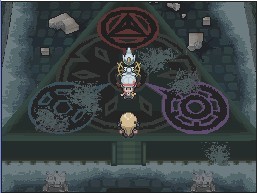 携带阿尔塞罗斯到アルフのいせき阿鲁夫遗迹的一所民家,可以触发剧情。考古学家会带着主角和草泥马一起进入遗迹,就在考古学家研究壁画的时候,主角被传送到了一奇怪的空间。出门一看居然来到了城都地区最北方的シントいせき新都遗迹,进入登山者小屋的门一看居然是新奥地区的冠军白菜姐姐,跟着白菜姐姐回遗迹,白菜姐姐说想举行仪式只能携带草泥马一只精灵,回去小屋把其他精灵存起来再回去。仪式只能诞生一只空间神兽,白菜姐姐会让你选择是右下法阵的帕路基亚或者左下法阵的迪亚路加或者上方法阵的奇拉蒂娜,精彩的剧情动画之后就可以得到你选择的空间神兽了,只有1级。剧情结束后自动传回阿鲁夫遗迹。
