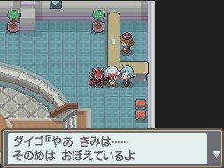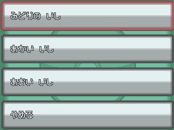 击败小智后前往关东地区的山吹市,在西路夫公司右上角的柜台可以见到方缘地区的冠军大吾先生。他和以前一样还是个石头控,会拿出三块美丽的石头让你挑选。如果你身上有空位的话,他会根据你选择的石头颜色不同,会送给你木守宫,火雉鸡,水跃鱼其中一只。对应关系为:“みどりのいし绿色石头”木守宫,“あかいいし红石头”火稚鸡,“あおいいし蓝石头”水跃鱼。