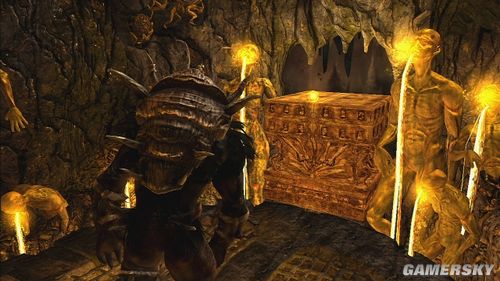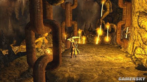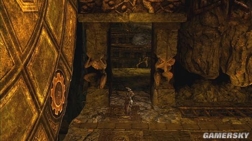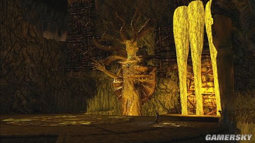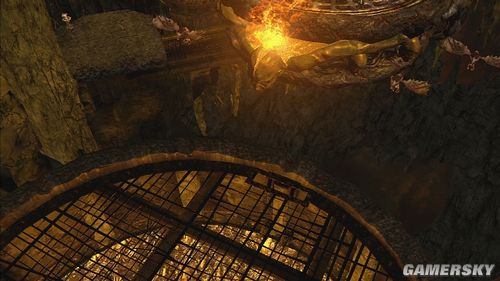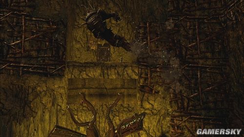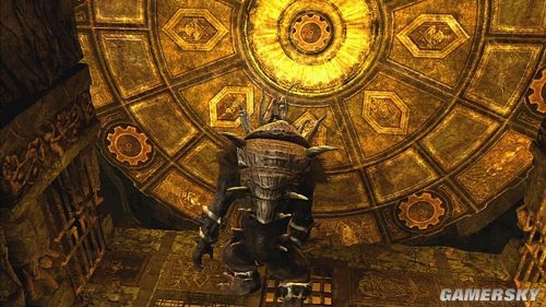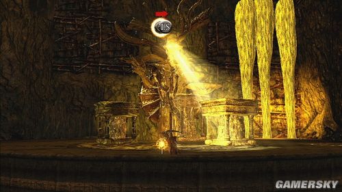 推落后要操纵大怪物攀爬墙壁,清掉小怪后,神像的光线会让另一块石头出现,搬动石头到3点钟的位置,由于石头会慢慢的消失,可以先将石头往下来后,再从左边按B钮将石头直接推到开关上,就可以利用这些石壁往右上角移动,神像会慢慢地往下沉,再从墙壁上跳到另一边的墙上去。