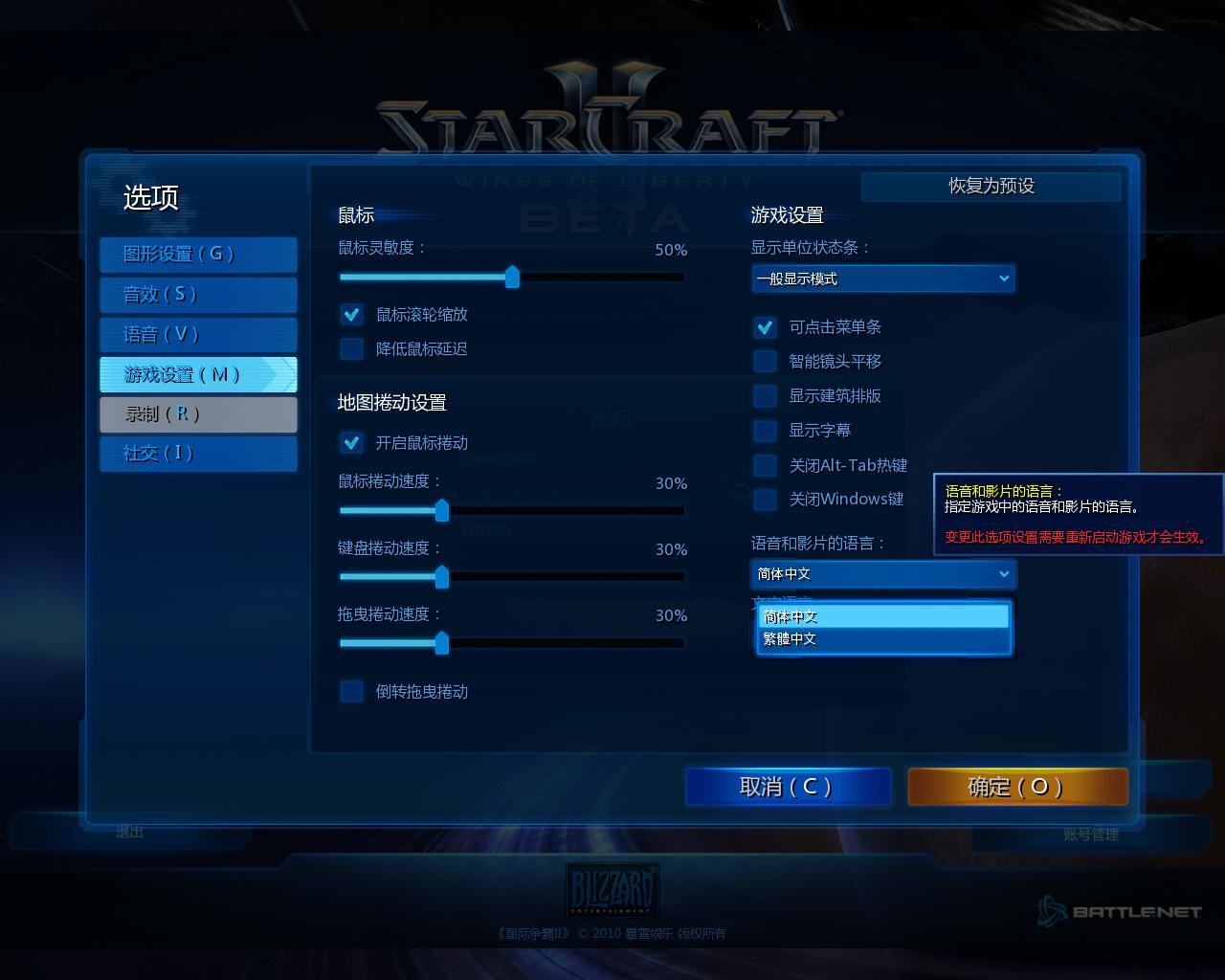 修改C:\Documents and Settings\用户名\My Documents\StarCraft II Beta