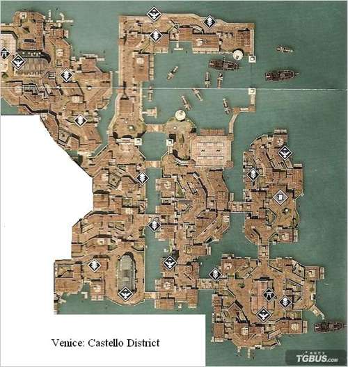 作者:秀发污柔丝以下图是我自己扫描的,所以清晰度比较差。对想完美通关的朋友或许能起到一点帮助,根据图标分别为观察点、密码图纸、刺客徽章、羽毛、雕像。
