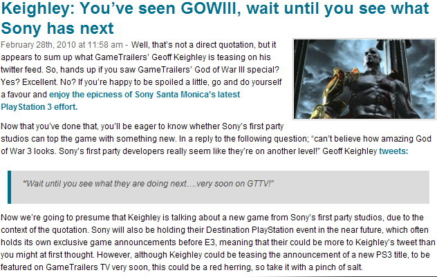 Geoff Keighley是GTTV的当家主持,他已经迫不及待的想公布这一索尼的大作。以下即是他“无心之言”的情景: