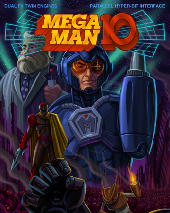 正统的《洛克人》欧美与日本的海报风格差异一直是玩家们吐槽重要目标,这如今的《洛克人10》也不例外,欧美的宣传海报还是一个造型怪异的大叔形象……日本的海报就以卡通风格为主。 《洛克人10来自宇宙的威胁》对应WiiWare、PSN、XBLA平台,Wii版和PS3版预定201