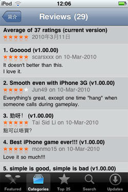 昨天,iPhone版街头霸王4正式在AppStore上架,售价9.99美元(折合人民币约68元)。今天,街霸4的下载量已经高踞AppStore游戏排行榜首位,评价5颗星,一举把人气极高的“植物大战僵尸”游戏斩于马下,成绩喜人。 查看网友评价,中外网友一致对街霸4表现出高度赞赏,让