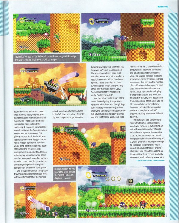《索尼克4篇章1》对应WiiWare、PSN和XBLA,预定2010年夏季发售。国外电玩杂志做了一期《索尼克4》的报道,文中有不少关于本作的游戏画面,除感受索尼克的速度外,还有许多小谜题以及EggMan的各种邪恶发明等着我们。您当前所处的位置:17173首页>单机站>mul>正文