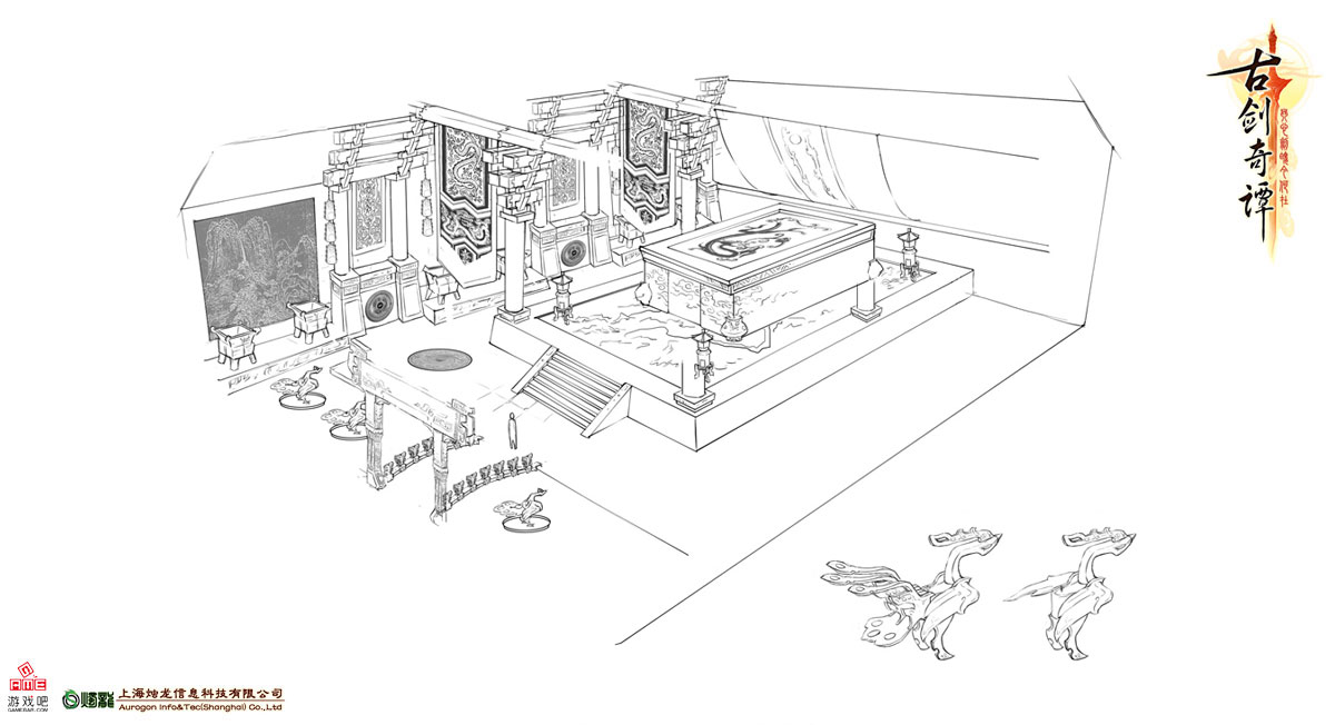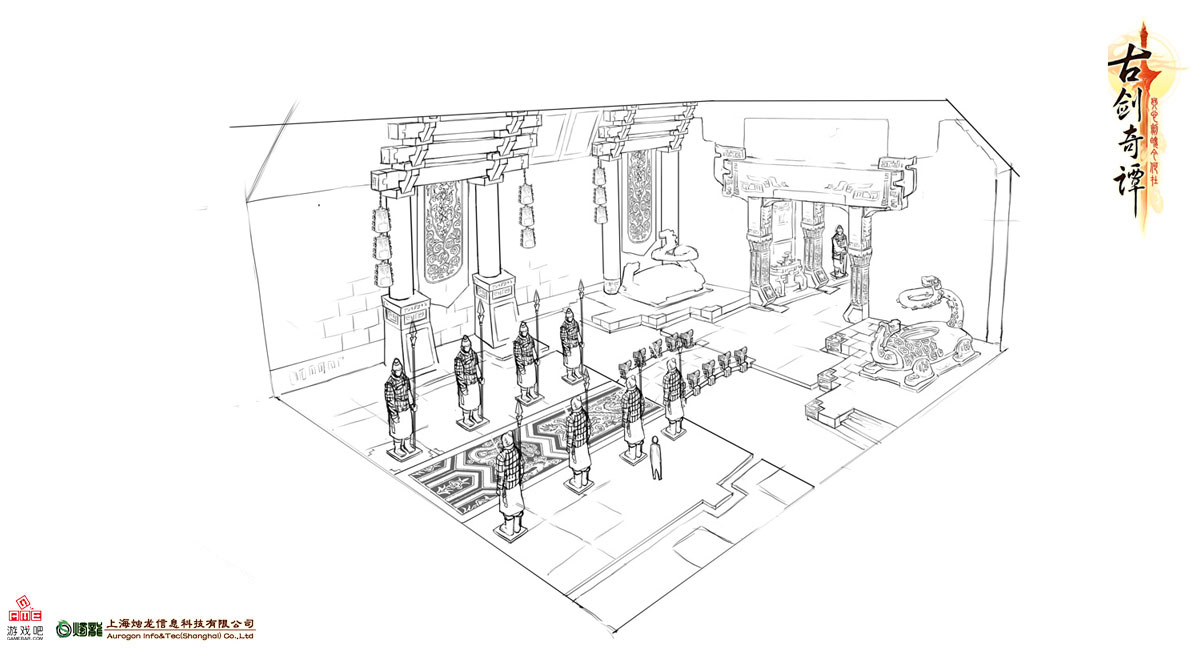 皇陵大殿设定:依托强大的游戏引擎和不断提升的技术实力,图中的精巧布局和设定细节在3D场景中将得到最大限度的还原,既然我们无缘真实的秦王陵墓,就让我们在游戏中仔细体会吧