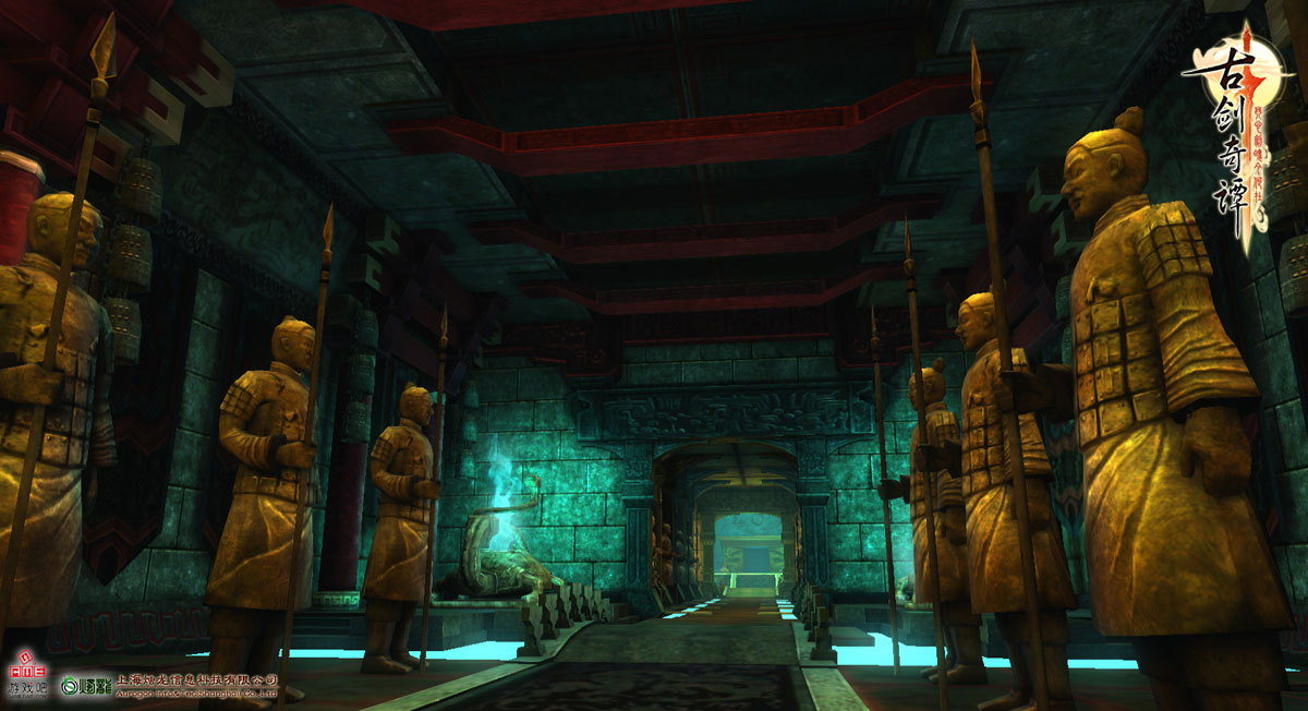 在之前展示的风景秀丽的江南美景图中,我们仿佛徜徉于小桥流水、青砖绿瓦的浓郁古韵之间,而这次呈现在玩家们面前的是鲜为人知的幽暗世界。《古剑奇谭》正是这样,通过各式风格迥异的景观,表现中华大地的盛世绘卷。设计人员注重于架构具有传奇性和历史文化性的游戏世界,不仅致力于各种风情迥异的城镇,更致力于设计美轮美奂的迷宫场景。大体看过秦始皇陵墓的恢弘之后,在接下来的报道中,我们将深入到迷宫内部,从全新的设定图中感受其中奇巧构造,探寻新奇的游戏体验,敬请玩家们期待!