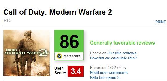 可以想象曾有大批气急败坏的PC玩家掩杀而至,泄愤般地为MW2打出最低分。