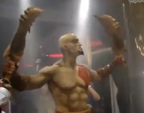 下面是来自youtube的网友拍摄的一段索尼在巴西的《战神3》发售现场视频,索尼还为玩家带来了一段插曲,一个相当壮的肌肉男扮演奎爷COS,下面就是这段cos插曲视频: