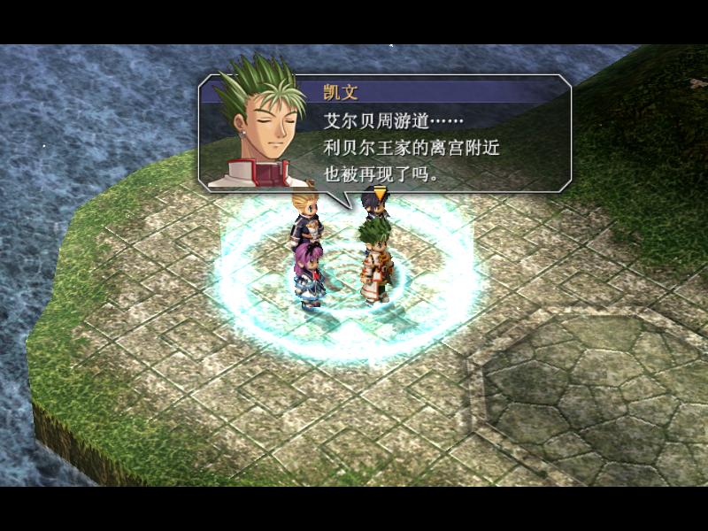 从大教堂出来之后,莉丝的肚子饿了,去超市买完东西出来之后,凯文二人发现有人跟踪,引诱他至码头才发现原来是基尔巴特这个小丑,他还是老样子,脸皮厚的说话都不带打嗝的……经典的对白之后就是开打,机器人的攻击很高,而且也要小心基尔巴特的冰冻攻击,很讨厌,战斗胜利之后,凯文正准备质问基尔巴特,突然出现了一个戴面具的奇怪的男人,他似乎认识凯文,说了一番奇怪的话之后,凯文身上的“方石”突然发出了白色的光芒……