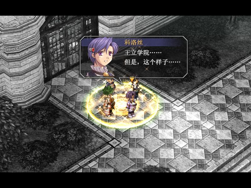 先去发光的蓝色石碑那里,必须带上科洛丝才能打开门,进入了无色的王立学院,
