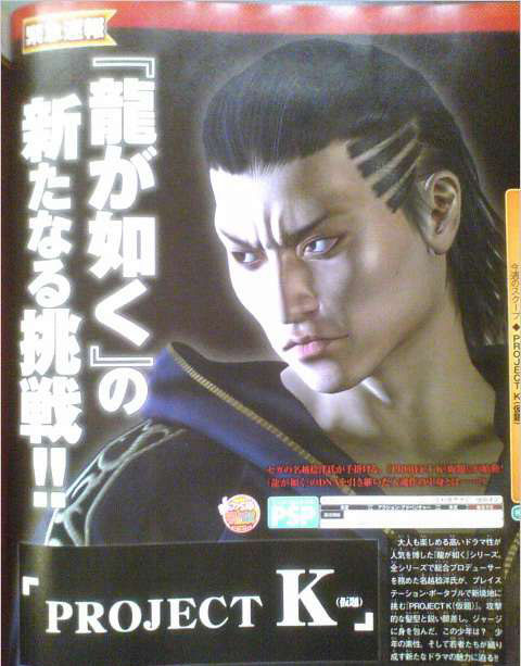 高清平台超人气大作《如龙》目前正是确认登陆PSP,游戏名称暂名为《project K》,这是该作首次登陆掌机平台,目前fami通杂志只公布了该作的角色之一,该作将会和以往的《如龙》系列的剧情类似但又不同的故事: