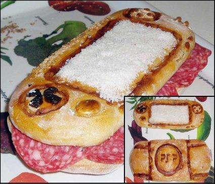 牛人制作的面包版PSP,上下两层,中间还有火腿,很口水啊