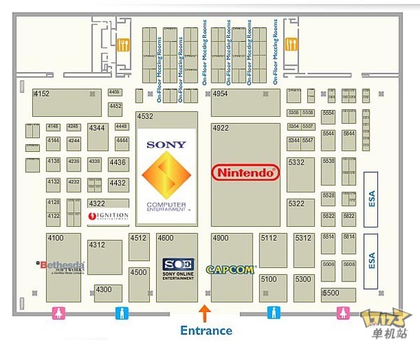 今年6月份的E3展台分布图正式公布了,分布和往年差不多,比较戏剧的还是任天堂与SONY的的展台依然是面对面的对看,而微软的展台正被一大群一线的开发商包围着,相信今年的E3一定会更加精彩!