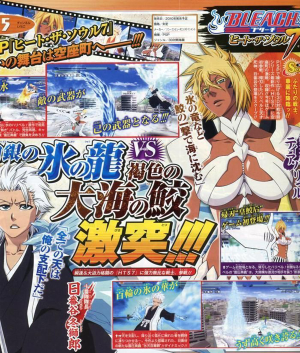 改为了四人对战形式的死神游戏最新作《死神 灵魂升温7》又有了最新的杂志情报,在下图中我们看到了原作中那经典的场面:白银之冰龙VS褐色的大海鲛。
