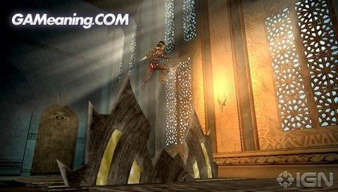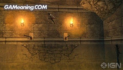 在PSP上的动作也许要简单些,但是王子那些经典动作还是在的,不过就是不用自己担心是否能把握好时机了,很多地方可能游戏默认可以过去。但是不要以为简单就很好过,还是需要要玩家快速、准确的利用周围环境来到达目的或者击败敌人,有的地方机关是有时间限制,玩家在跳跃或者翻滚时就可能会很少会有停顿,有时一步错可能还会导致失败。