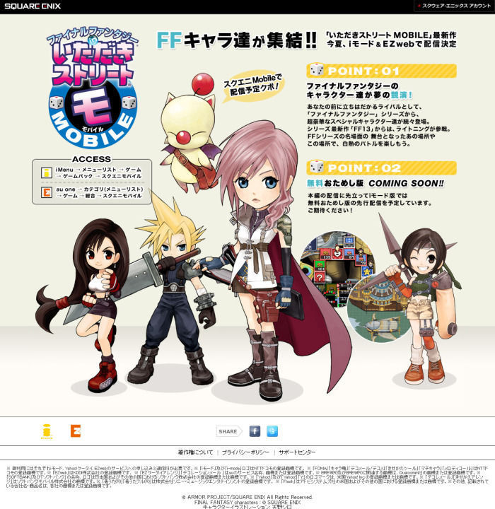 我想很多玩家对这个系列的游戏再熟悉不过了,在PS.PSP上都能看到这个系列的身影,以大富翁为主题,网罗了SE旗下的人气游戏主角来当主角,该系列的最新作品《最终幻想富豪街MOBILE》将会在夏天登陆手机平台。