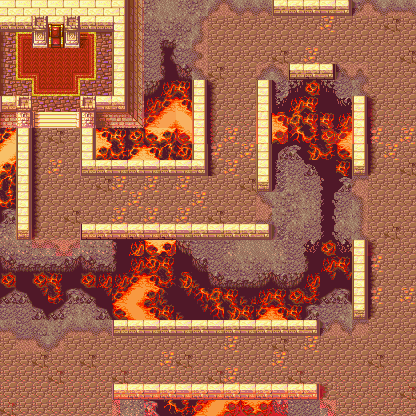 料理了后面敌人后,就该最大限度调整战斗力,一举将前面的敌人消灭掉,这里要注意的关键并不是敌人的实力,而是那些暗红格子的地板,这些地形是会喷出火焰的,一不小心站在上面,很容易被火舌击中,很可怕哦,一次可要耗损HP10点呢,要是重伤虚弱时再被敌人补上一击,那就挂定了。这样的结局相信谁也不会接受的。
