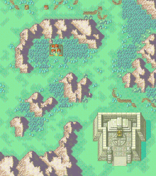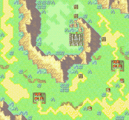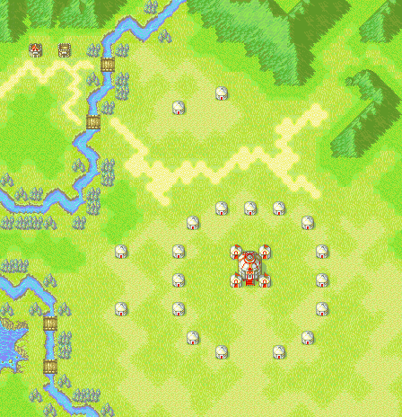 右边的村庄大多数人访问是没有效果的,让フィル(菲露)去访问,剑圣カレル(卡莱尔)就会加入。用バアトル(巴亚特尔)或主角ロイ(罗伊)也可以说得。相当有潜力的剑圣カレル(卡莱尔),可是他已经19级了,就要封顶了,看来要是还有提高能力的物品时就给他使用吧。村庄旁边有最后的武器店和道具店,如果要买就要采购吧,都是能买到的最好的东西了,不过这个地方的道具店只有杖,魔法书在左上角那个道具店里。