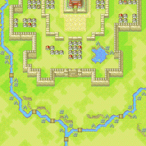 先用小红和小绿去把宫殿门口的士兵干掉,然后移动几个比较强的人去左上角的村庄,其他人移向右下角村庄。解决不多的几个守卫,回复一下损伤严重的人的HP吧。此时宫殿里的敌人也该跑出来了,做好迎击的准备。进入右下角村庄可以得到恢复HP的リライブ杖,而进入左上角村庄就会有魔道士ルゥ(路)加入。