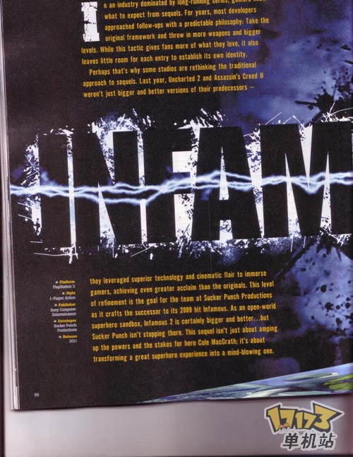 PS3独占大作《恶名昭彰》系列最新作《恶名昭彰2》(Infamous2)正式公布,在最新的一起国外杂志上为我们带来了最新的消息,本作将有全新的能力供玩家使用,舞台也将换到另一个新的城市,面临的敌人也将更多更凶猛。