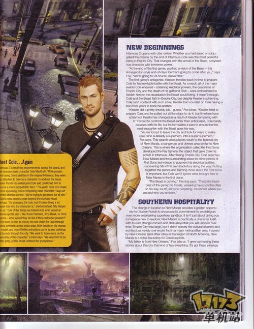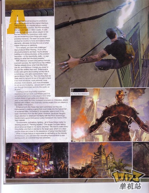 PS3独占大作《恶名昭彰》系列最新作《恶名昭彰2》(Infamous2)正式公布,在最新的一起国外杂志上为我们带来了最新的消息,本作将有全新的能力供玩家使用,舞台也将换到另一个新的城市,面临的敌人也将更多更凶猛。 艺术指导MatthiasLorenz:“我们顺应更多的呼