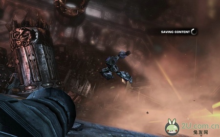 一路前进到下图的区域,这里还是让你练习一下战斗。目标则是四个柱子出现的四个机枪炮塔。这里注意可别把突击步枪真当CS里面的大菠萝玩命的扫射了