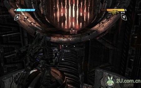 沿路的平台可以捡到又一个新武器,**发射器。长按R键即可捡起。不过不建议使用,**发射器的动作实在太慢,使用冲锋枪还是比较容易对付这些速度极快的飞行兵