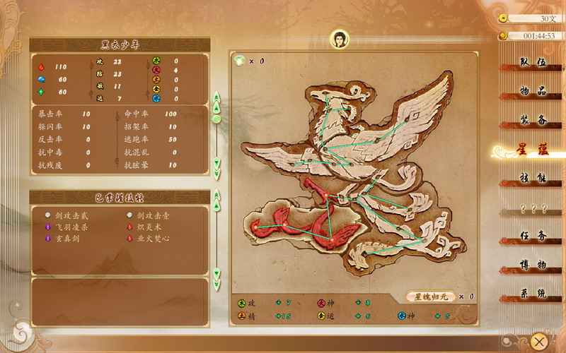 星蕴技能成长系统也是古剑之前宣传的重头系统。待咱的屠苏大哥出场(其实眼尖的朋友早知道屠苏该出场了,是吧)。由于我也是仅仅玩了初期,星蕴系统体验的还不够多。总之,星蕴系统分为金木水火土五行属性,根据星魂归元的积攒,玩家可以根据自己的喜好