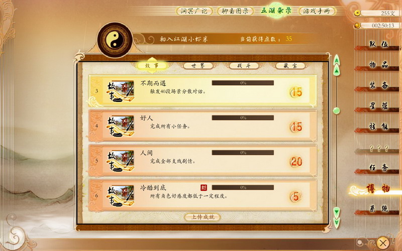 说白了,就是依照各种达成条件,完成某项条件就会获得某项成就称号。很多都是不自觉就能很轻易地得到,但想要达成所有收集,你不去深山老林拿着攻略闭关修炼个千八百年估计够呛了。开玩笑,其实这也是鼓励咱大伙勤奋点,恶心点,为了称号在游戏里的时间多待点。。。为了回报烛龙的良苦用心,有时间,有金钱(啥,这又不是网游,当我瞎扯淡不就行了,真是的),有耐性的收集狂们,多多努力去收集成就吧。