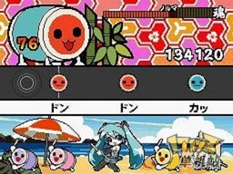 继《太鼓达人》系列在NDS上推出的第3作《太鼓达人DS:妖怪大决战》收录了初音的经典歌曲后,日本手机版《太鼓达人》游戏为纪念《太鼓达人DS:妖怪大决战》的发售,也展开了和初音合作而来的喜感内容,新衣装直接采用了初音的造型。