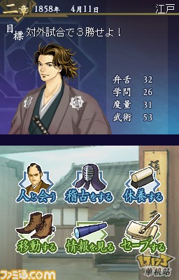 龙马一天的行动,可以通过“指令画面”决定。与人相会,修行锻炼,