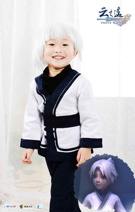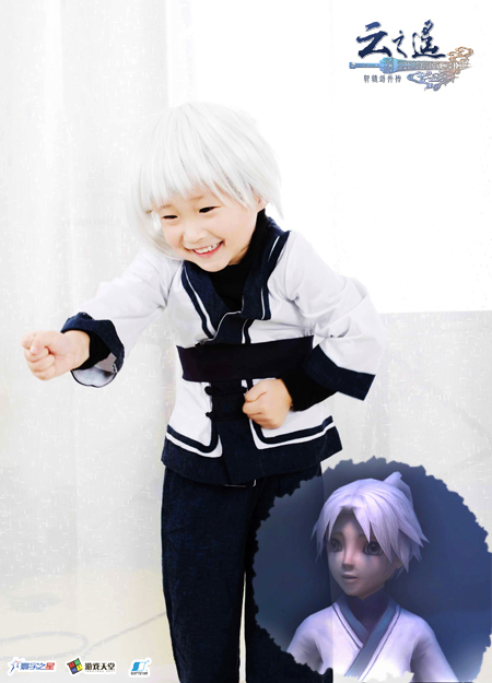 在《轩辕剑外传云之遥》中,虽然主角人物是少年时期的徐暮云,但偶尔穿插出现的小暮云,人气却意外得高,俘虏了一片女玩家的心。而这组超级可爱的小暮云COSPLAY照,就是其中一位妈妈玩家处于对“小木鱼”的喜爱,“强制”拍摄的。