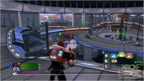 这周推出的Arcade新作《MondayNightCombat》结合了塔防与《魔兽DotA》的要素,是一款相当热血有趣的第三人称动作射击游戏。玩家在游戏中可以从六个兵种当中选择一个,每个兵种皆各具特色与优劣之处,玩家透过XboxLIVE进行线上游戏时得与队友截长补短、携手合作,才